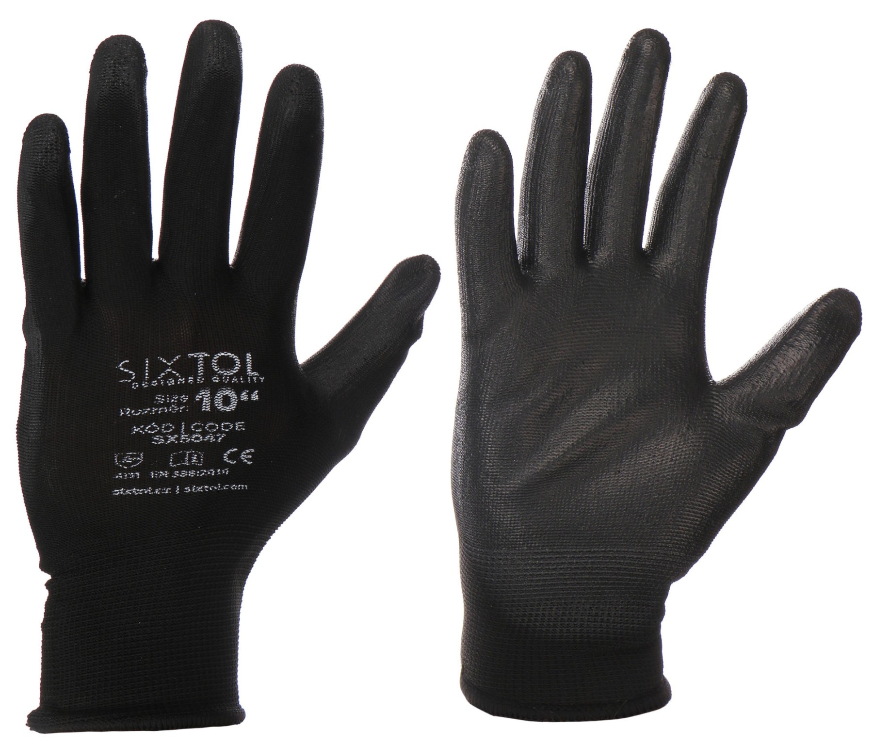 Guanti da lavoro in poliestere, semi-immersi in poliuretano GLOVE PE-PU 10, neri, taglia 10" SIXTOL