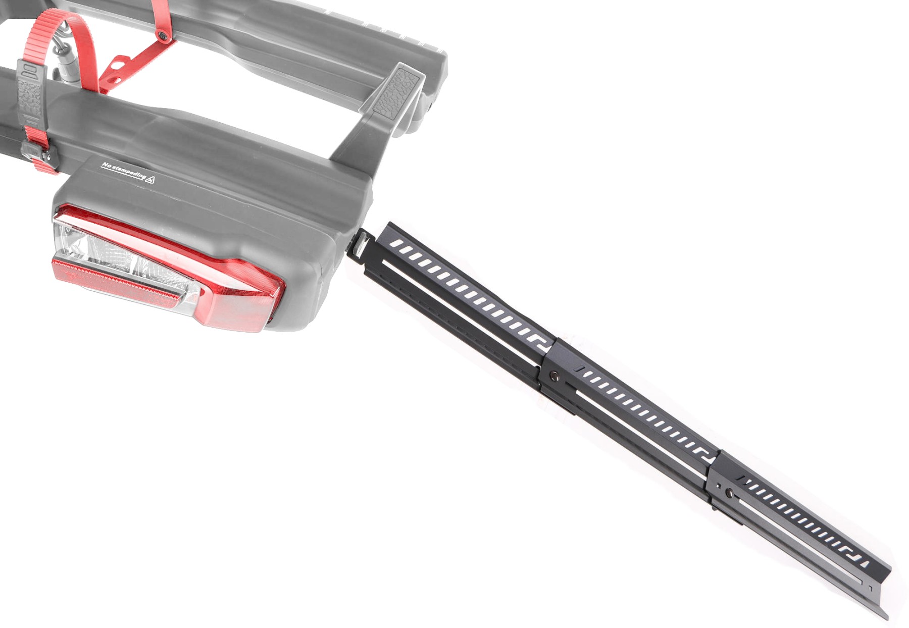 La rampa di carico facilita la manipolazione delle biciclette durante il carico sul portabici SIXTOL E-BIKE PRO, soprattutto per le biciclette elettriche più pesanti. La struttura della rampa permette di estenderla alla lunghezza completa per un accesso fluido della ruota e, dopo l'uso, si può facilmente ripiegare in una forma compatta per una semplice conservazione e trasporto. La robusta costruzione in acciaio garantisce stabilità durante l'uso e una lunga durata anche sotto carico regolare. La rampa riduce notevolmente lo sforzo fisico nella manipolazione della bicicletta e aumenta il comfort a ogni utilizzo del portabici.