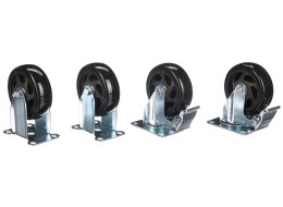 Il set di ruote di ricambio SIXTOL per il carrello da officina MECHANIC TROLLEY JASON è progettato per un movimento stabile e affidabile del carrello in officina e in garage, grazie alla combinazione di due ruote orientabili con freno efficiente e due ruote fisse senza freno. Le ruote sono dotate di robusto supporto in acciaio e di una resistente battistrada in plastica ABS, che assorbe le vibrazioni e consente uno scorrimento fluido su diverse superfici. Le precise distanze di montaggio assicurano la compatibilità con il carrello JASON, mentre il set completo di viti e dadi permette una sostituzione rapida e semplice senza dover acquistare ulteriori accessori. La costruzione complessiva è pensata per l'uso quotidiano e, grazie ai freni, garantisce il posizionamento sicuro del carrello durante il lavoro.
