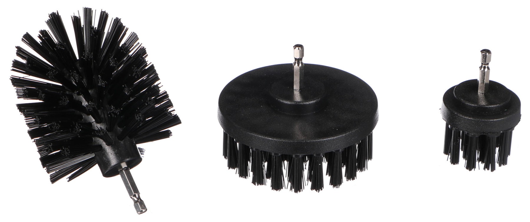 Set di qualità composto da 3 spazzole rotanti dure per trapano DRILL BRUSH 3 HARD, progettate per la pulizia dei cerchioni, del sottoscocca, delle parti del motore e di altre superfici dure. Il set contiene 3 spazzole dure (nere) che possono essere utilizzate non solo per la pulizia dell'auto, ma sono adatte anche per la pulizia di superfici dure in casa come rivestimenti in cucina e bagno, gabinetto, vasca, officina o per la pulizia di attrezzature da giardino.